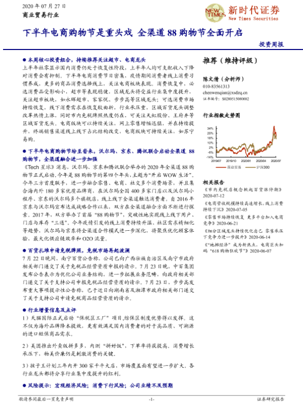 【新时代证券】【20200727】商业贸易行业投资周报:下半年电商购物节是重头戏 全渠道88购物节全面开启-13页 行业研究