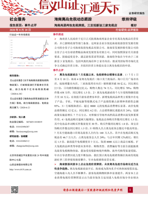 【山西证券】【20200820】海南离岛免税动态跟踪:海南再添两张免税牌照,三亚拟新设三家免税店-3页 行业研究