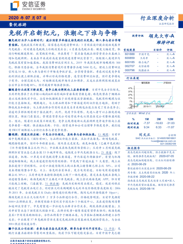 【安信证券】【20200707】餐饮旅游行业深度分析:免税开启新纪元,浪潮之下谁与争锋-50页 行业研究