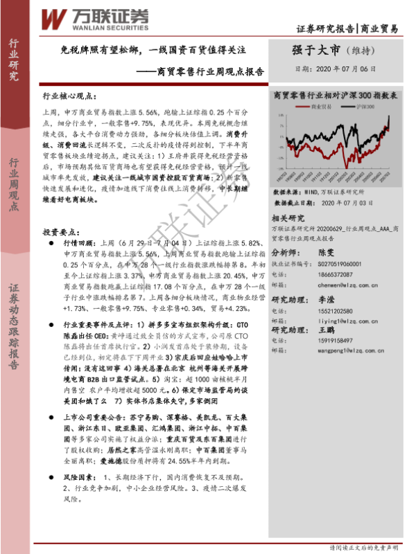 【万联证券】【20200706】商贸零售行业周观点报告:免税牌照有望松绑,一线国资百货值得关注-11页 行业研究