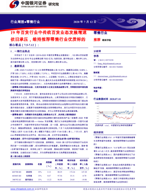 【银河证券】【20200712】2019年百货行业中传统百货业态发展增速依旧承压,维持推荐零售行业优质标的-40页 行业研究