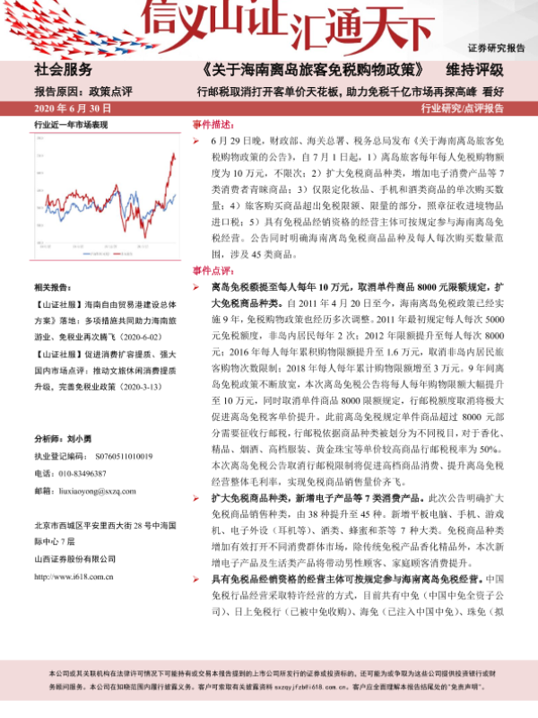 【山西证券】【20200630】关于海南离岛旅客免税购物政策-5页 行业研究