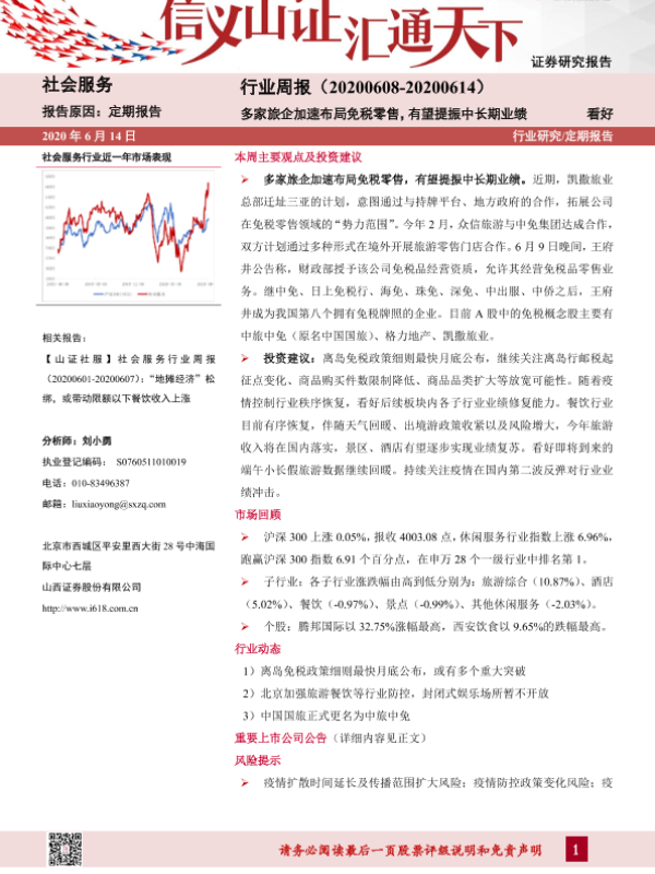 【山西证券】【20200614】社会服务行业周报:多家旅企加速布局免税零售,有望提振中长期业绩-9页 行业研究