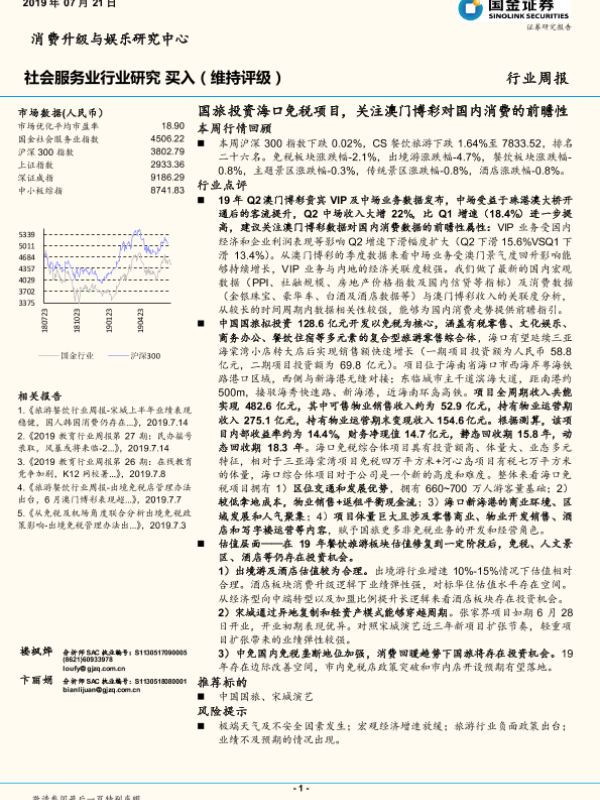 【国金证券】【20190721】社会服务业行业周报:国旅投资海口免税项目,关注澳门博彩对国内消费的前瞻性-11页 行业研究
