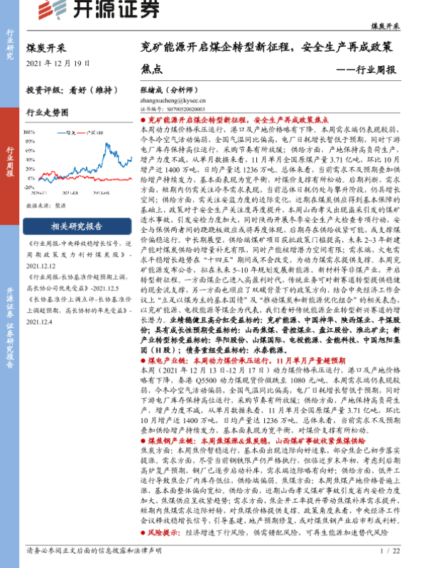 【开源证券】【20211219】煤炭开采行业周报:兖矿能源开启煤企转型新征程,安全生产再成政策焦点-22页 行业研究