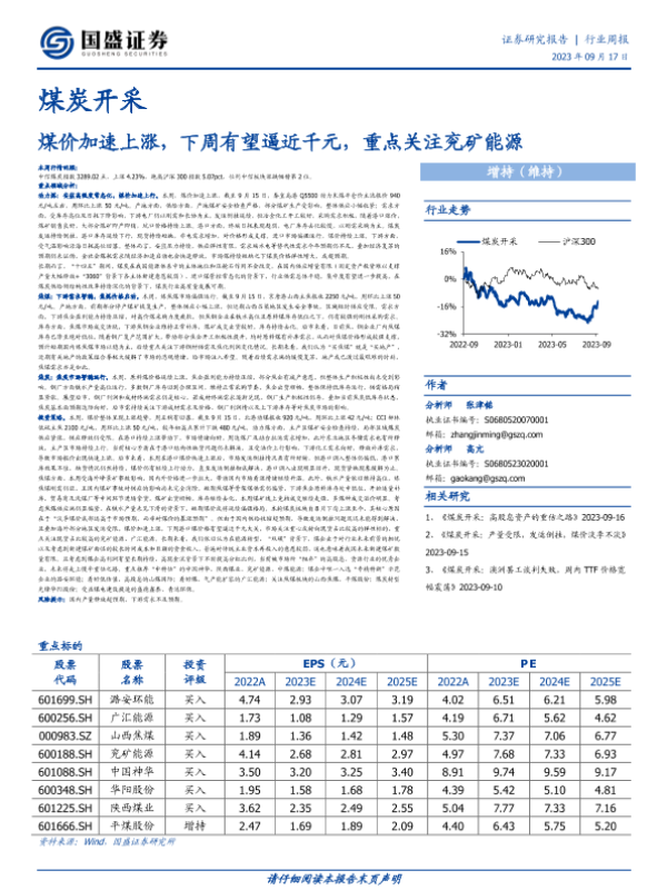 【国盛证券】【20230917】20230917-国盛证券-煤炭开采行业周报:煤价加速上涨,下周有望逼近千元,重点关注兖矿能源-17页 行业研究