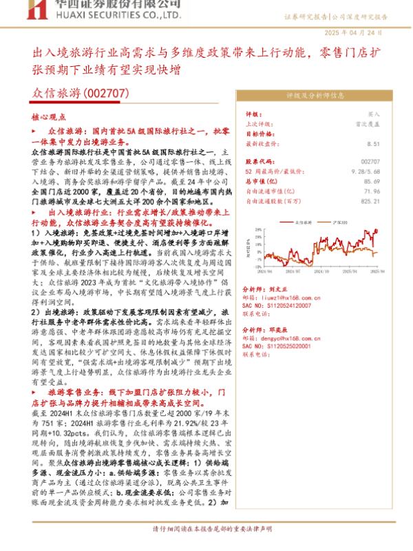 【华西证券】【20250424】众信旅游(002707)出入境旅游行业高需求与多维度政策带来上行动能,零售门店扩张预期下业绩有望实现快增-30页 公司研究