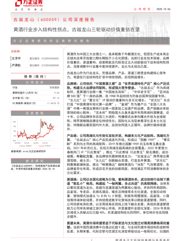 【方正证券】【202510】古越龙山(600059)公司深度报告:黄酒行业步入结构性拐点,古越龙山三轮驱动价值重估在望-35页 公司研究