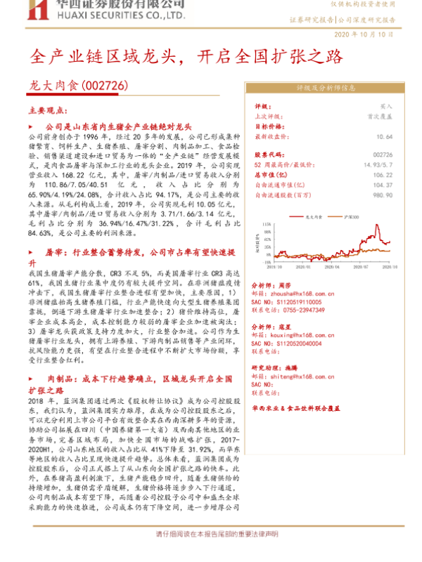 【华西证券】【20201010】2020.10.10-龙大肉食:全产业链区域龙头,开启全国扩张之路-24页 行业研究