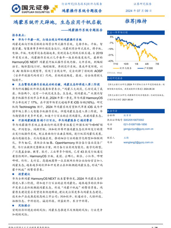 【国元证券】【20240709】鸿蒙系统开天辟地,生态应用千帆启航——鸿蒙操作系统专题报告-38页 行业研究