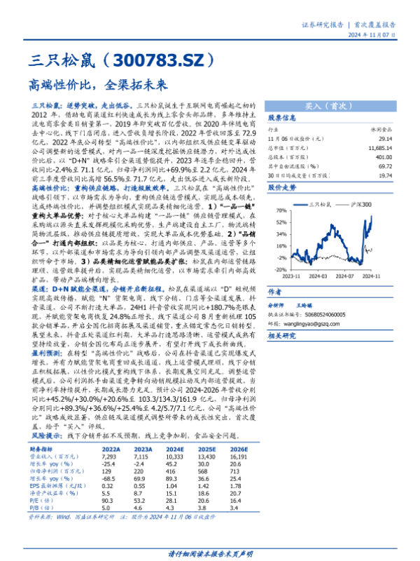 【国盛证券】【20241107】三只松鼠(300783)高端性价比,全渠拓未来-28页 行业研究