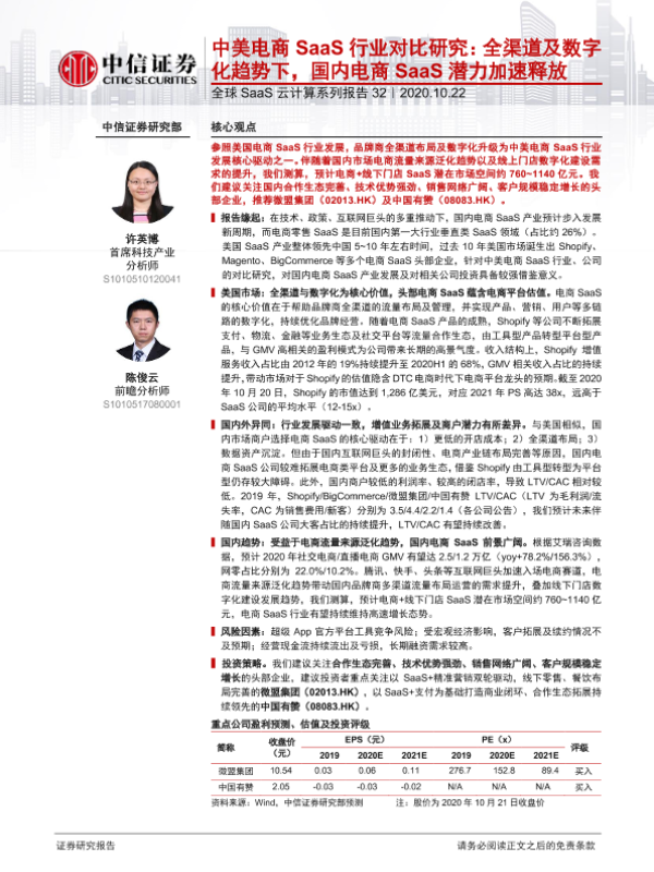 【中信证券】【20201022】全球SaaS云计算系列报告32:中美电商SaaS行业对比研究:全渠道及数字化趋势下,国内电商SaaS潜力加速释放-34页 行业研究