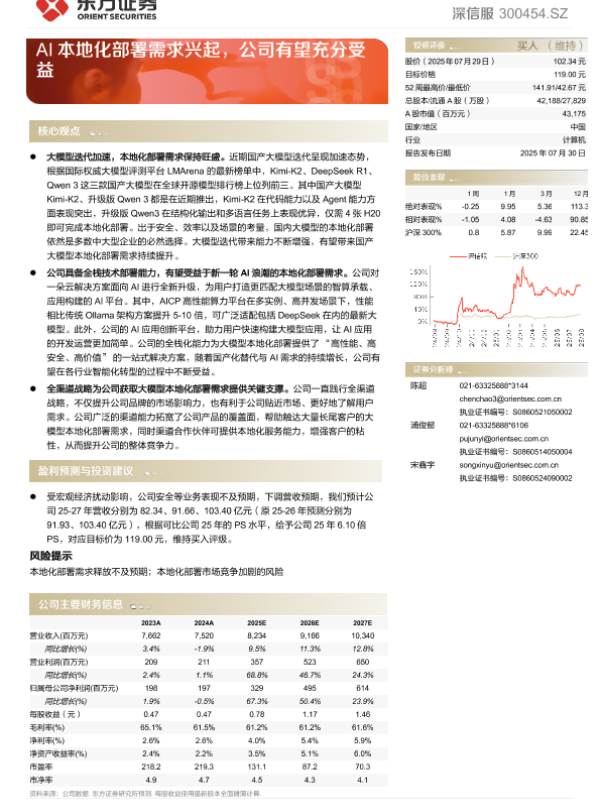 【东方证券】【20250730】深信服 - AI本地化部署需求兴起,公司有望充分受益-5页 公司研究