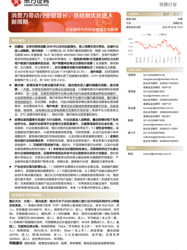 【东方证券】【20220515】后疫情时代的投资逻辑之互联网-消费力带动行业稳增长,供给侧优化进入新周期-47页 行业研究