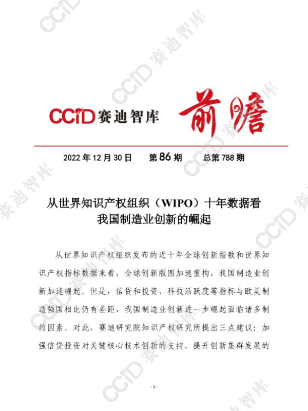 【赛迪研究院知识产权研究所】【20221230】从世界知识产权组织(WIPO)十年数据看我国制造业创新的崛起-16页 行业研究