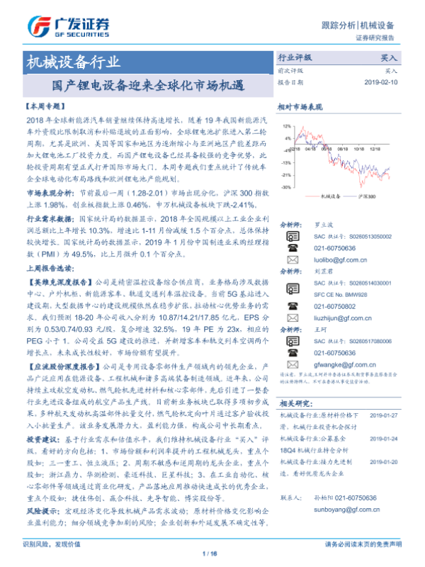 【广发证券】【20190210】机械设备行业:国产锂电设备迎来全球化市场机遇-16页 行业研究