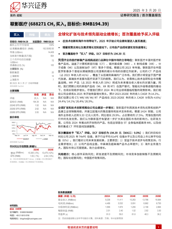 【华兴证券】【20250320】联影医疗-全球化扩张与技术领先驱动业绩增长;首次覆盖给予买入评级-31页 行业研究