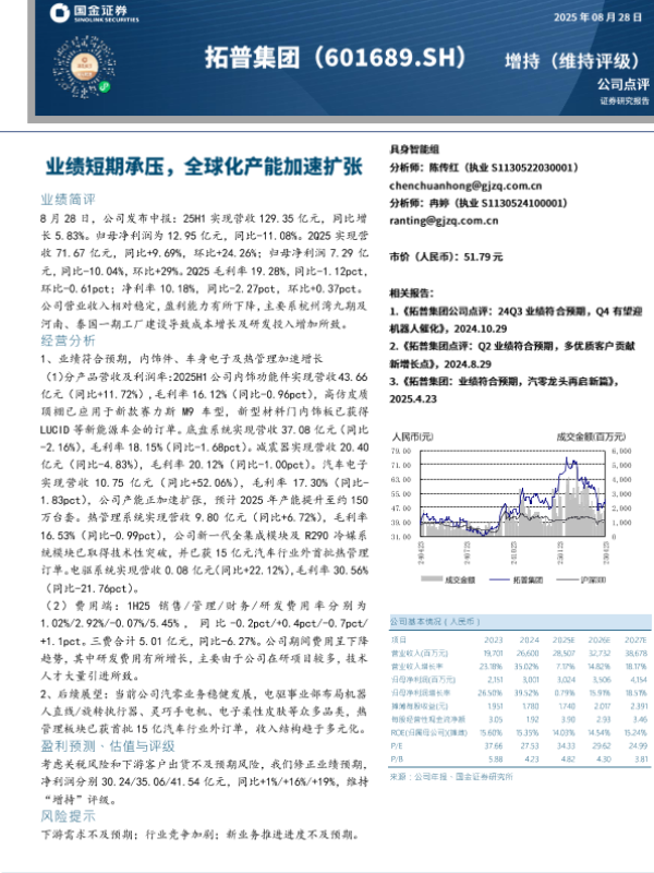 【国金证券】【20250828】拓普集团-业绩短期承压_全球化产能加速扩张-4页 证券期货研究报告