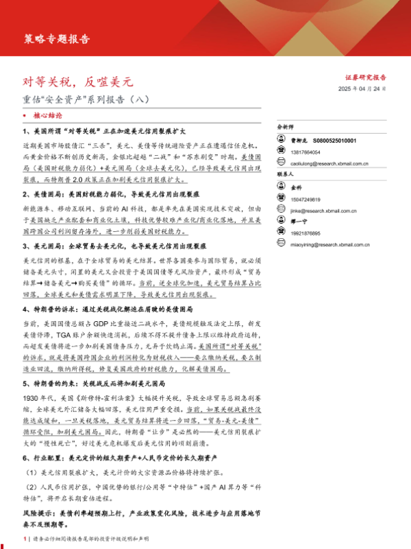 【西部证券】【20250424】重估“安全资产”系列报告(八):对等关税,反噬美元-20页 宏观策略