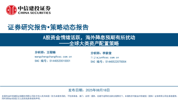 【中信建投证券】【202508】A股资金情绪活跃,海外降息预期有所扰动——全球大类资产配置策略-25页 证券期货研究报告