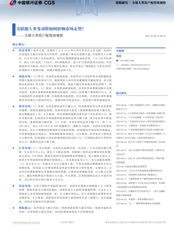 【银河证券】【20250809】策略研究·全球大类资产配置周观察:美联储人事变动将如何影响市场走势?-11页 宏观策略