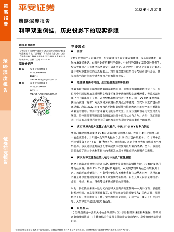 【平安证券】【20220427】策略深度报告:利率双重倒挂,历史投影下的现实参照-22页 行业研究