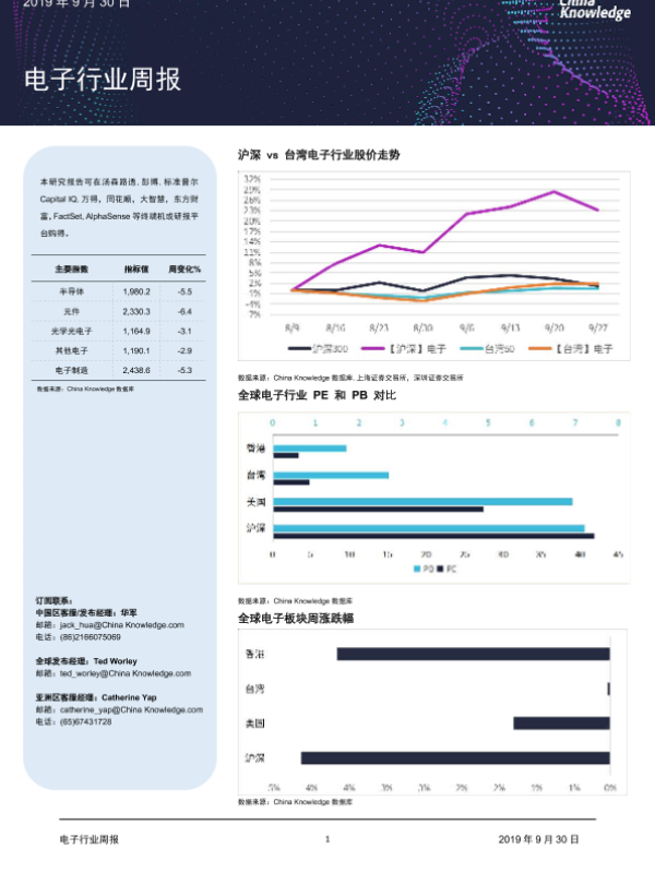 【China Knowledge】【20190930】电子行业周报-24页 行业研究