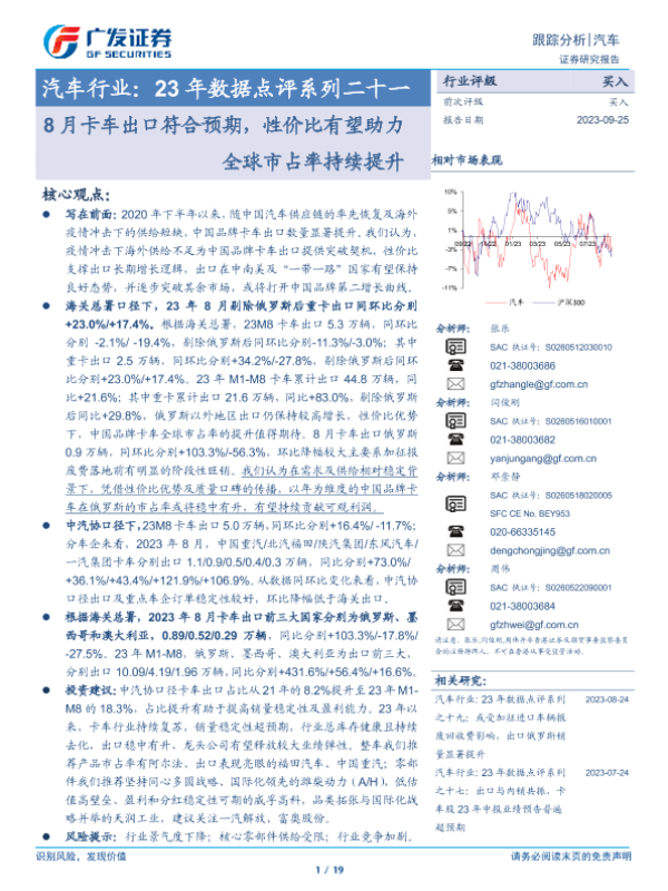 【广发证券】【20230925】23年数据点评系列二十一:8月卡车出口符合预期,性价比有望助力全球市占率持续提升-19页 行业研究