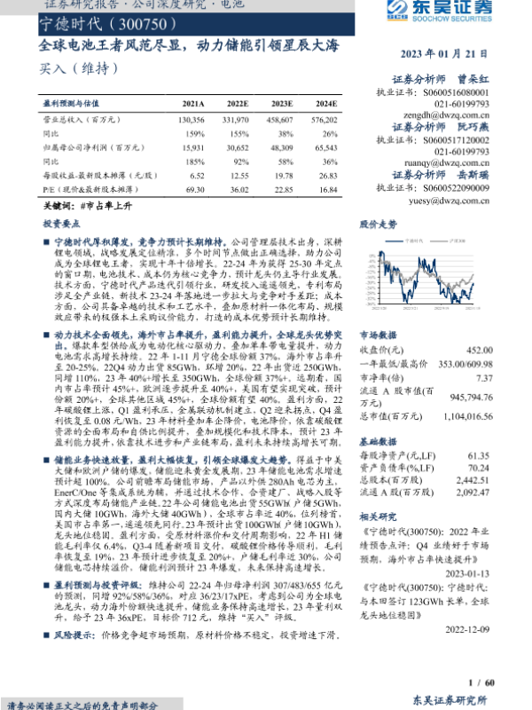【东吴证券】【20230120】全球电池王者风范尽显,动力储能引领星辰大海-60页 证券期货研究报告