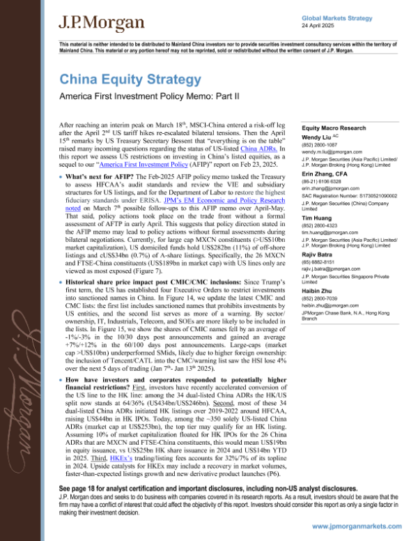 【J.P. Morgan】【20250424】China Equity Strategy America First Investment Policy Memo Part II-24页 宏观策略