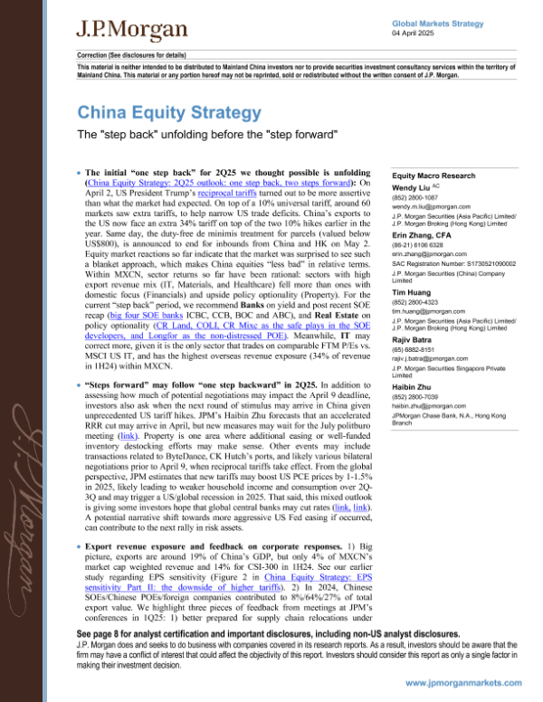【J.P. Morgan】【20250404】China Equity Strategy The 'step back' unfolding before the 'step forward'-13页 宏观策略