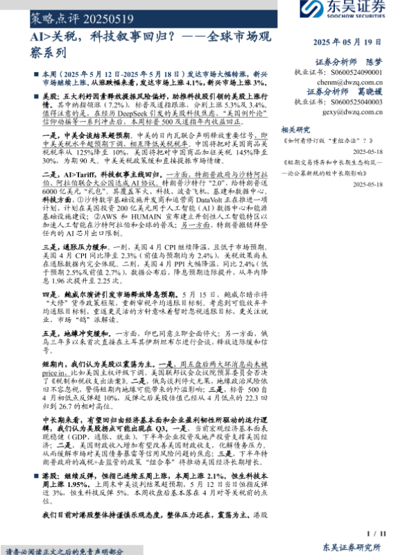 【东吴证券】【20250519】AI>关税,科技叙事回归?-11页 宏观策略