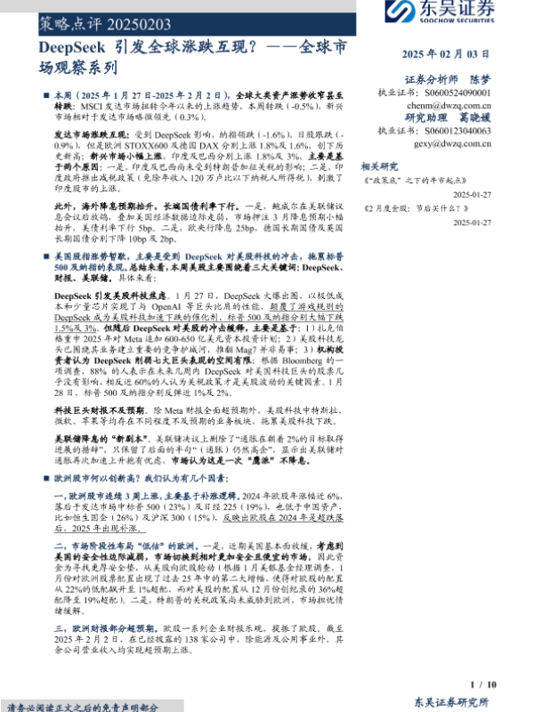 【东吴证券】【20250203】策略点评:DeepSeek引发全球涨跌互现?——全球市场观察系列-10页 宏观策略