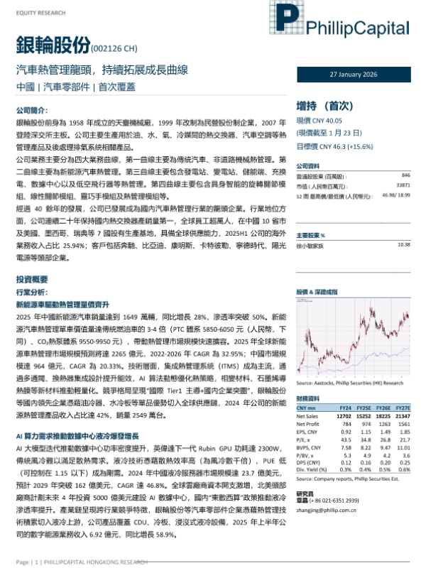 【PHILLIPCAPITAL HONGKONG RESEARCH】【202601】銀輪股份(002126 CH) 汽車熱管理龍頭,持續拓展成長曲線-6页 公司研究