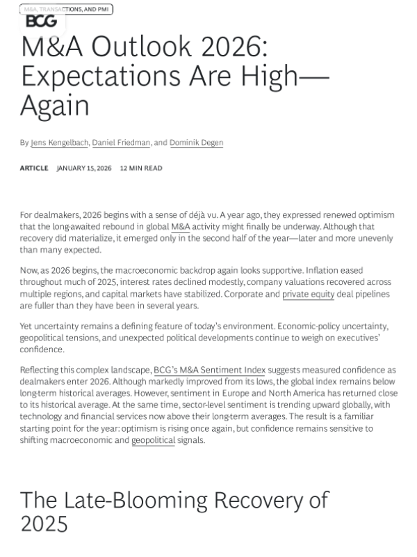 【Boston Consulting Group】【202601】M&A Outlook 2026 Expectations Are High—Again-11页 行业研究
