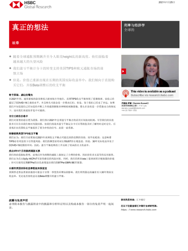 【HSBC】【20210125】全球投资策略之投资观点:迷魂记-33页 宏观策略