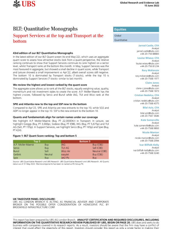 【瑞银】【20220615】瑞银-全球投资策略-顶部的支持服务和底部的运输-26页 行业研究