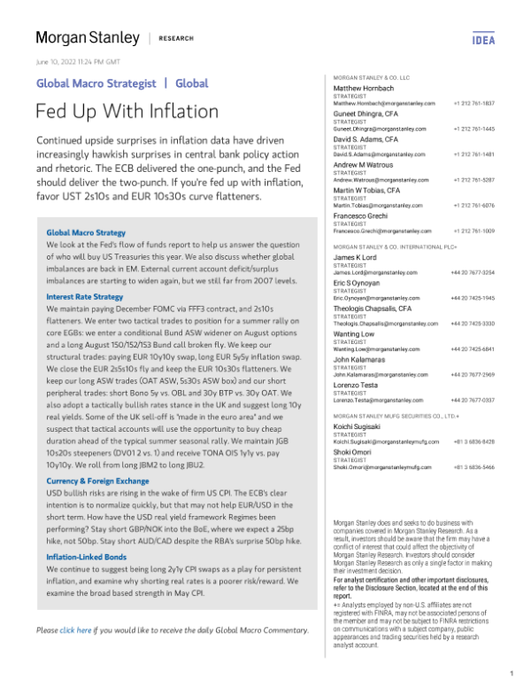 【Morgan Stanley】【20220610】摩根士丹利-全球投资策略-全球宏观策略师:对通胀感到厌倦-86页 宏观策略