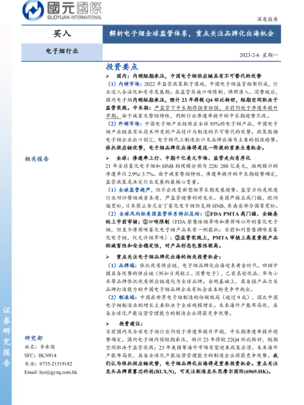 【国元国际】【20230206】2023年02月06日更新-国元国际-电子烟:解析电子烟全球监管体系,重点关注品牌化出海机会-26页 行业研究
