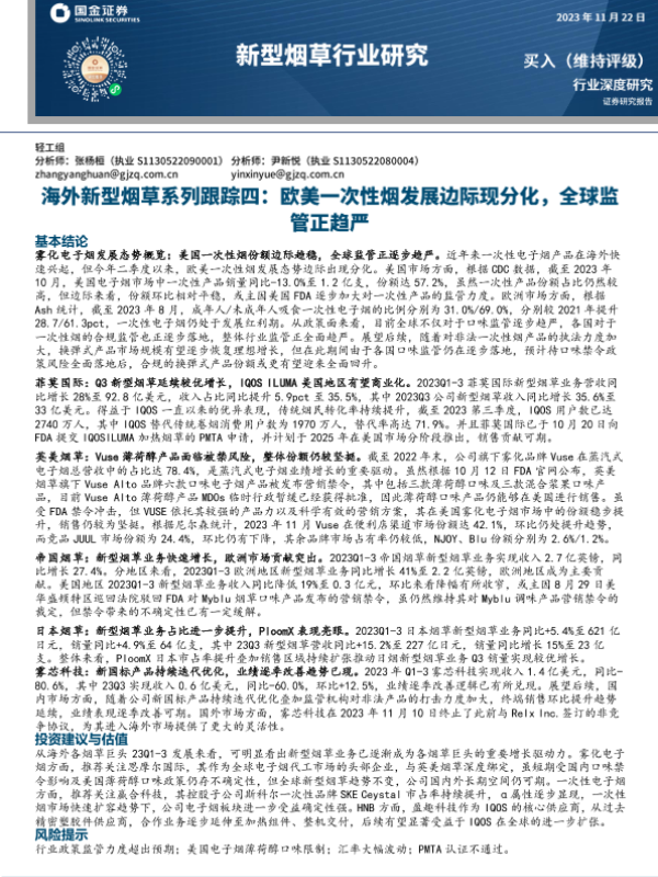 【国金证券】【20231123】海外新型烟草系列跟踪四-欧美一次性烟发展边际现分化-全球监管正趋严-17页 行业研究