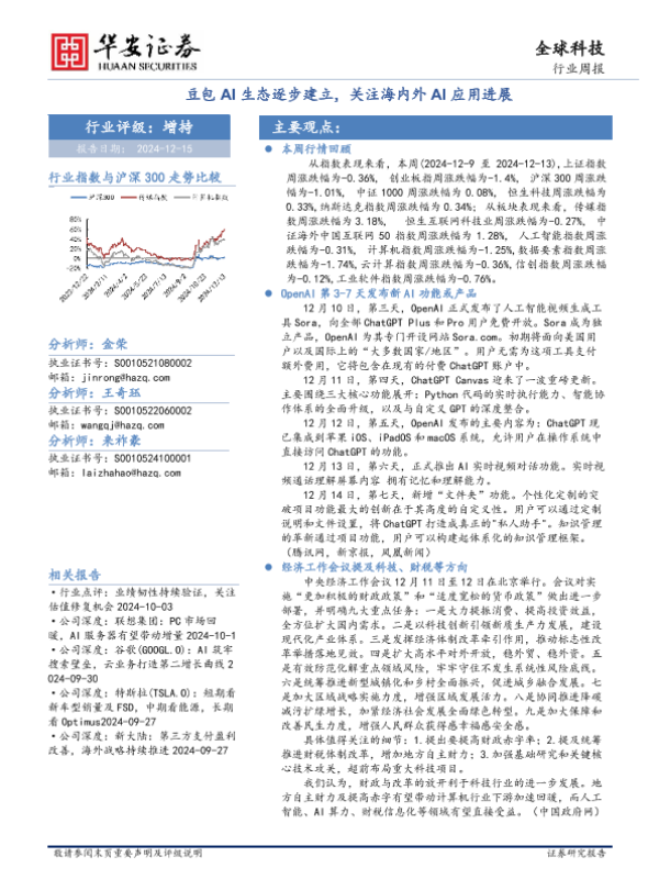 【华安证券】【20241215】全球科技行业周报:豆包AI生态逐步建立,关注海内外AI应用进展-27页 行业研究