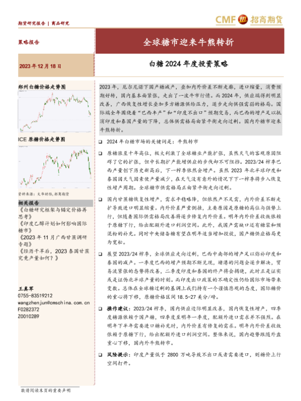 【招商期货】【20231218】白糖2024年度投资策略:全球糖市迎来牛熊转折-29页 行业研究