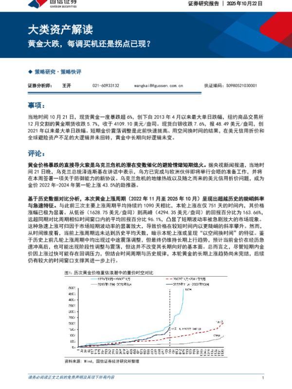 【国信证券】【202510】大类资产解读:黄金大跌,每调买机还是拐点已现?-5页 证券期货研究报告