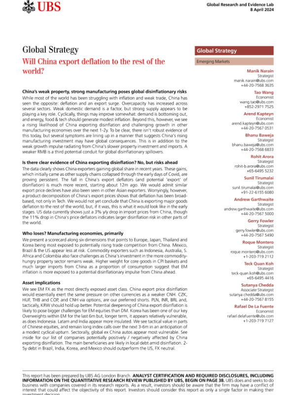 【UBS AG London Branch】【20240408】全球策略:中国是否会将通货紧缩输出到世界其他地区?-46页 行业研究