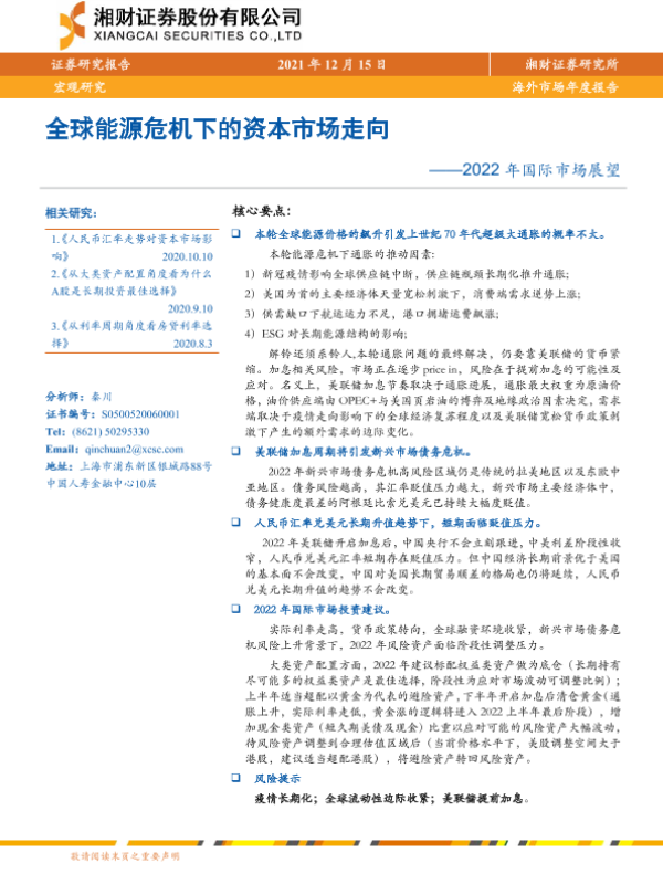 【湘财证券】【20211215】2022年国际市场展望:全球能源危机下的资本市场走向-22页 行业研究