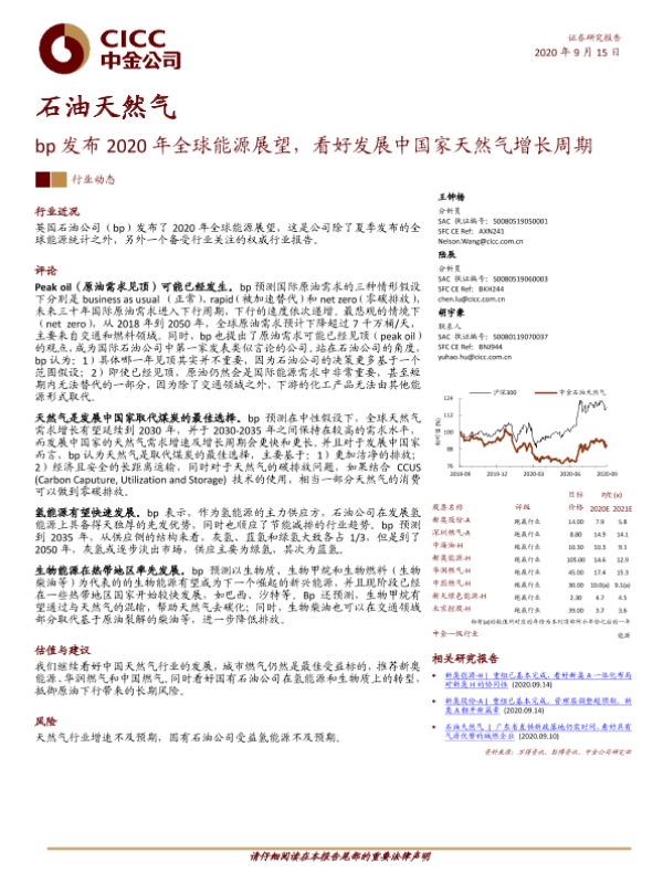 【中金公司】【20200915】石油天然气:bp发布2020年全球能源展望,看好发展中国家天然气增长周期-6页 行业研究