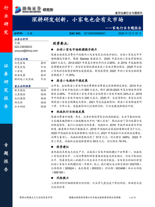 【渤海证券】【20221231】深耕研发创新,小家电也会有大市场-19页 行业研究