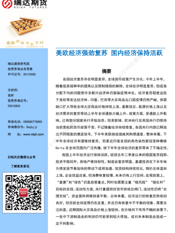【瑞达期货】【20210628】美欧经济强劲复苏,国内经济保持活跃-35页 行业研究