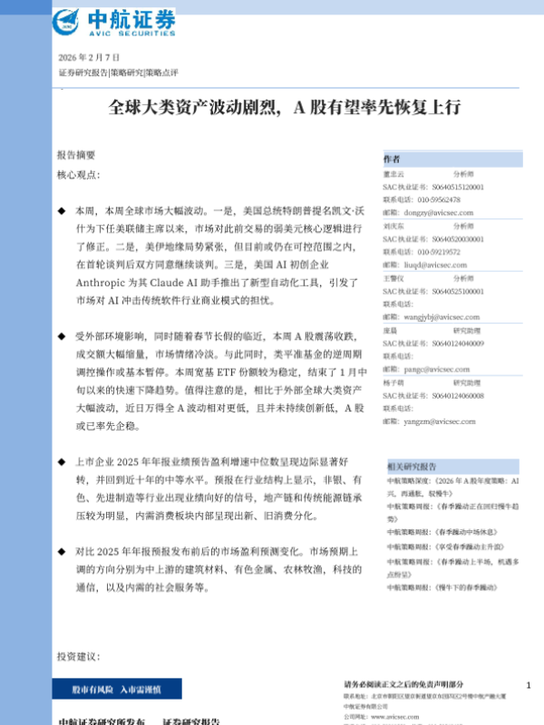 【中航证券】【202602】2026-02-09_中航证券_策略点评:全球大类资产波动剧烈,A股有望率先恢复上行.pdf-8页 宏观策略