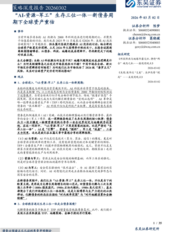 【东吴证券】【202603】“AI-资源-军工”生存三位一体—新债务周期下全球资产重估-35页 证券期货研究报告